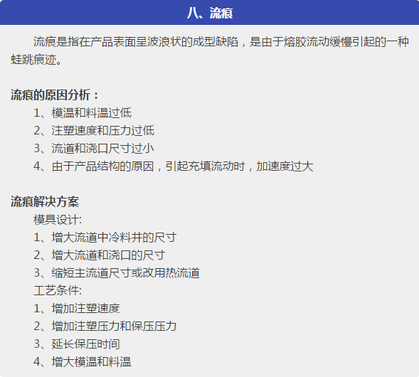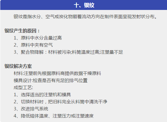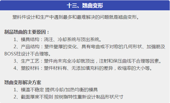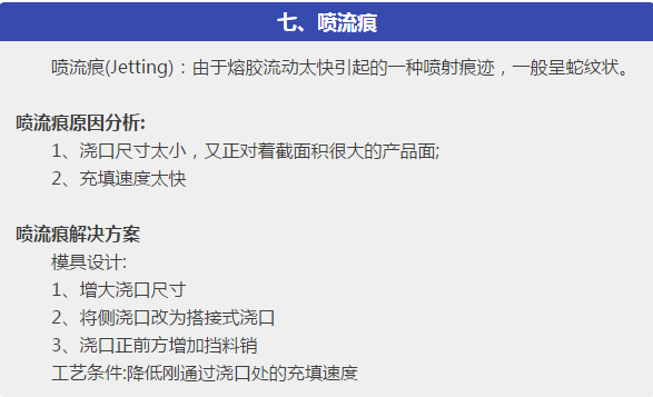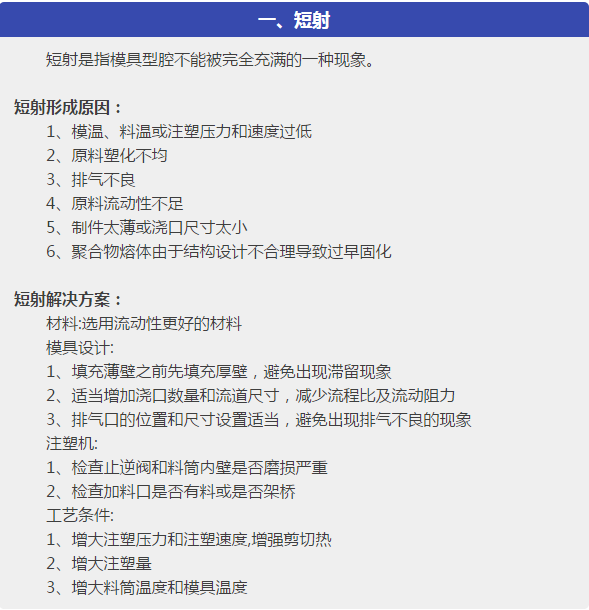 在注塑成型加式过程中,可能由于原材料处理不好、塑件或模具设计不合理、操作工没有掌握合适的工艺操作条件,或者因机械方面的原因,常常使塑件产品短射、凹痕、飞边、困气、开裂、翘曲变形等成型缺陷。