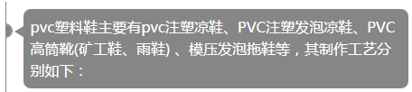 PVC塑料鞋所需要的原材料一般包括:PVC树脂粉、稳定剂(一般使用三盐二盐或者铅盐复合稳定剂,为了环保可以使用钙锌稳定剂)、PE蜡或石蜡、硬脂酸或单甘脂、轻质碳酸钙、增塑剂(常用的有DOP、DBP、氯化石蜡、环氧大豆油等)等,发泡鞋底还会用到发泡剂及发泡调节剂,想要获得更好的韧性会添加CPE等增韧改性剂。