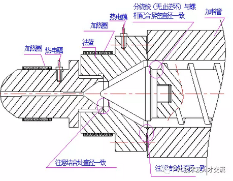 (8)料管尽可能避免在加料及射出时产生摩擦热,如尖角,突变等现象(图1-1)