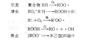 聚烯烃的热氧化属于自由基连锁反应机理,有自动催化行为,可分为引发、增长、终止三步反应: