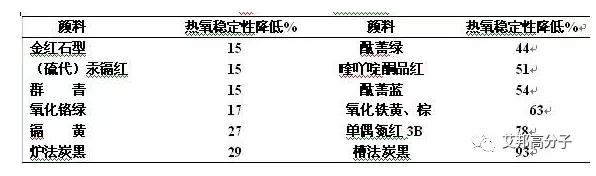 用于塑料着色的颜料或染料均存在耐温极限,达到这一极限温度,颜料或染料将发生化学变化,生成各种较低分子量化合物,其反应式均较复杂;不同的颜料存在不同的反应及产物,通过失重等分析方法可以检测不同颜料的耐温性,一般地: