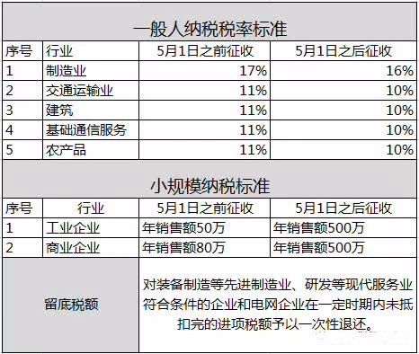 从2018年5月1日起,制造业纳税标准将从17%降到16%。