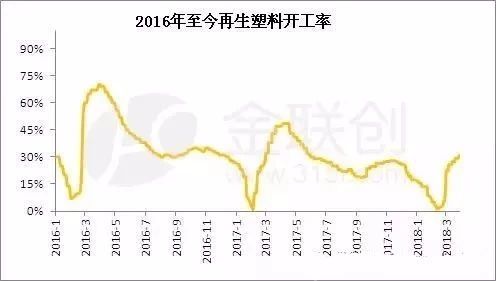 2018年来原料与再生料价差继续收窄,部分时段价差在300-500元/吨,新料与再生料价格影响力明显减弱,再生料市场供需博弈,因废塑料进口量大幅下滑,加之整顿因素,再生PE货源不多,市场报盘坚挺。