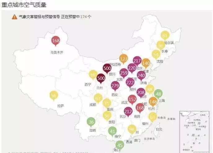 12月1日,京津冀及周边地区、汾渭平原、长三角地区北部正在发生一次大气重污染过程。截至11月30日,已有5个城市发布了红色预警、73个城市发布了橙色预警、1个城市发布了黄色预警,启动应急管控措施