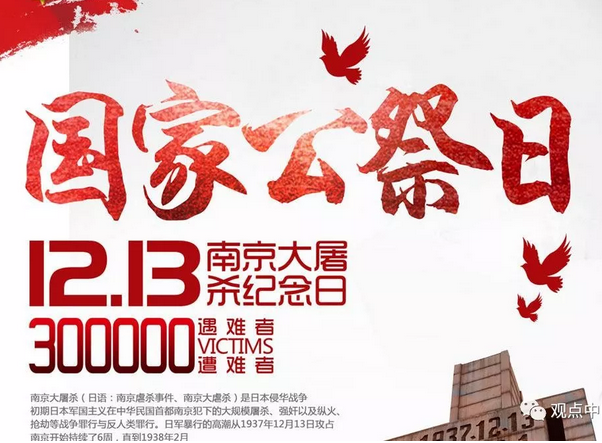 文章标题:——12.13国家南京大屠杀死难者公祭日:积淀民族记忆 擦亮和平底色!!