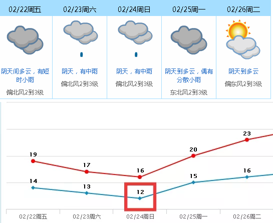 3-24日受冷空气影响,有中雨,气温继续下降,日温差小,天气阴凉;