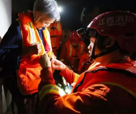 2019年7月9日,江西省峡江县水边镇沂溪村三名被洪水围困的村民,被当地消防队员成功救援出来。