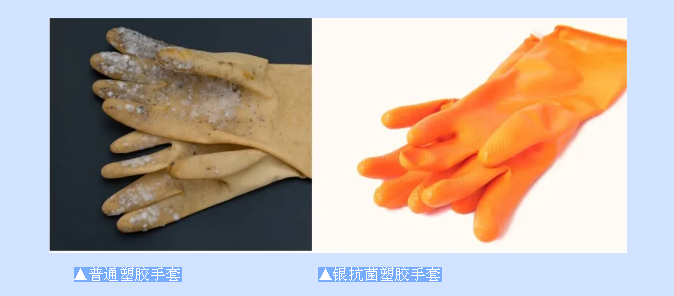 银抗菌材料对塑料的改性为制品增加了健康功能,让塑料制品本身具备安全、长效的抗菌性,抑制制品上的微生物,增加制品的健康度及使用寿命,达到可持续发展。在使用过程中塑料制品表面极易成为微生物生长的温床,它们大量堆积、滋生繁殖。例如家庭塑胶手套,由于长期放置在厨房环境中,经常过水,潮湿的环境再加上表面被油烟覆盖,塑胶手套上的细菌等微生物会迅速增加,不仅破坏手套原有柔韧性,发霉破损,甚至还能会直接转移到食材上。
