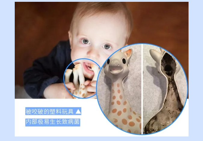 不仅如此,塑料制品本身的材料也会引来大量细菌等微生物,加工过程中使用的增塑剂、 纤维素、 湿润剂、稳定剂和色素等原料,一旦制品发生严重破裂情况,它们就极易成为微生物的温床;还有一些聚合物的表面是多孔的,会加速微生物的污染和聚集,进而导致污渍和异味,并可能传播细菌。例如,被咬破的塑料玩具。