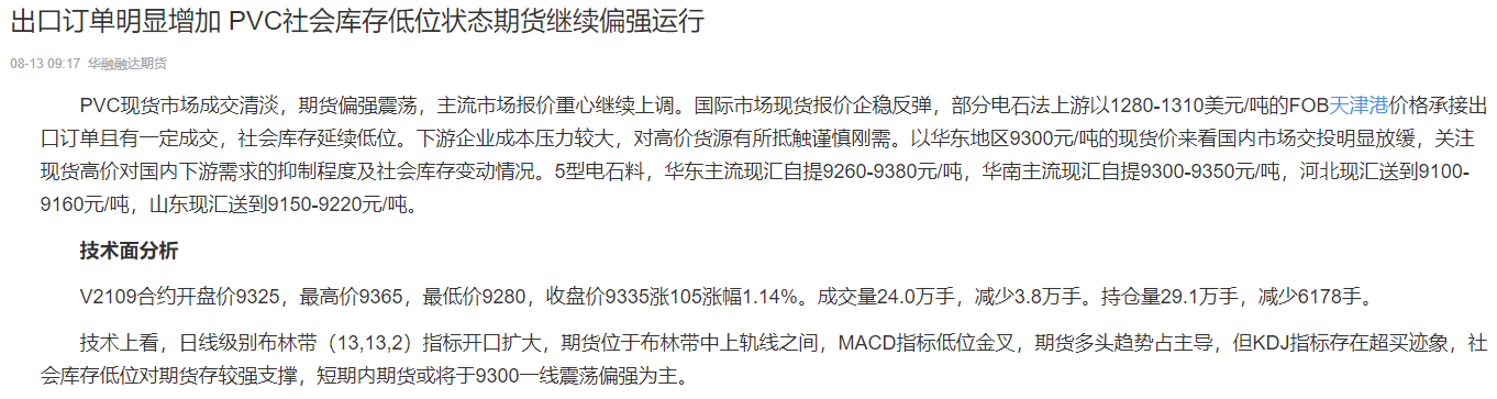 文章标题:出口订单增加,PVC期货继续增强运行