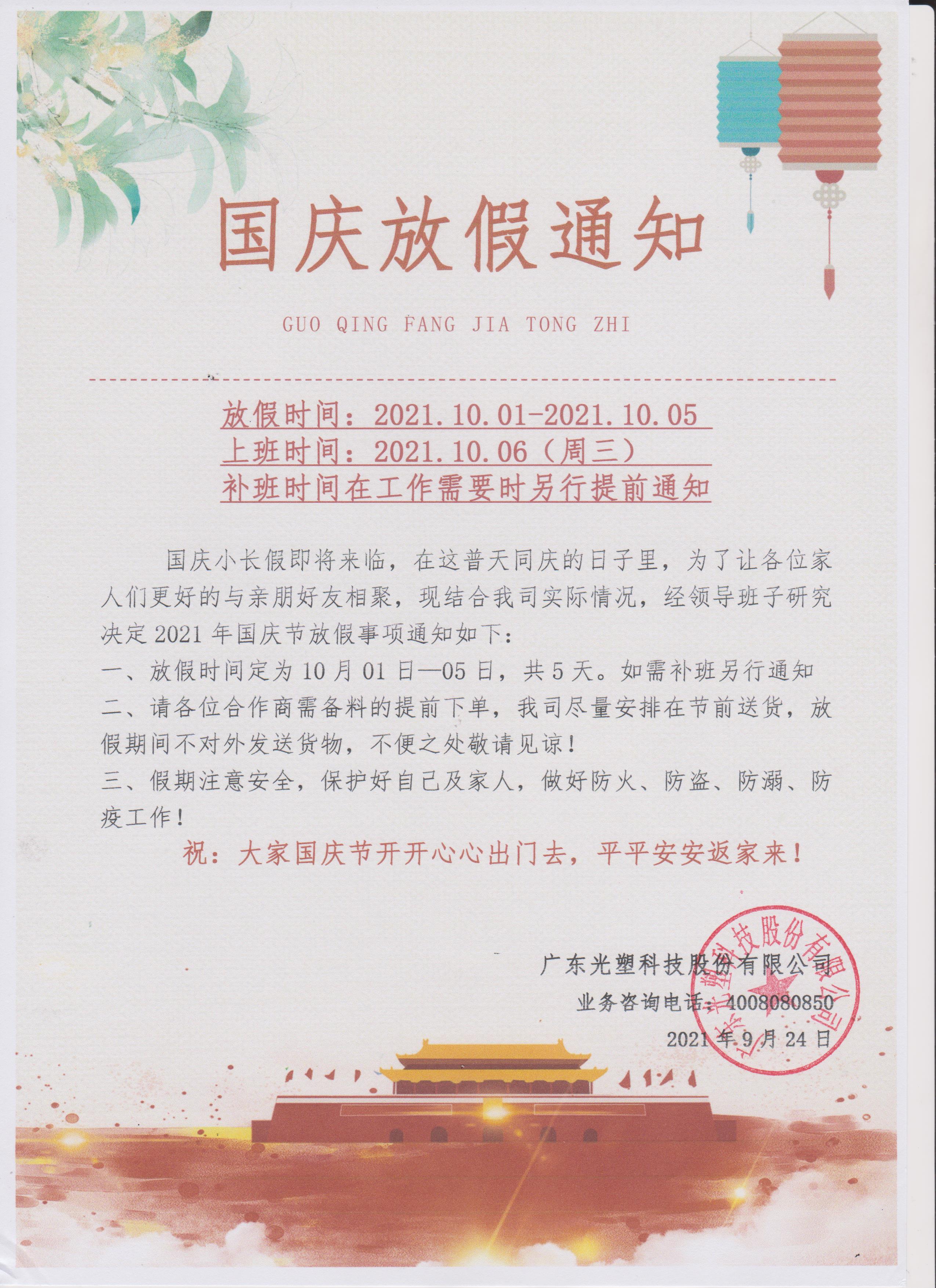 文章标题:国庆放假通知