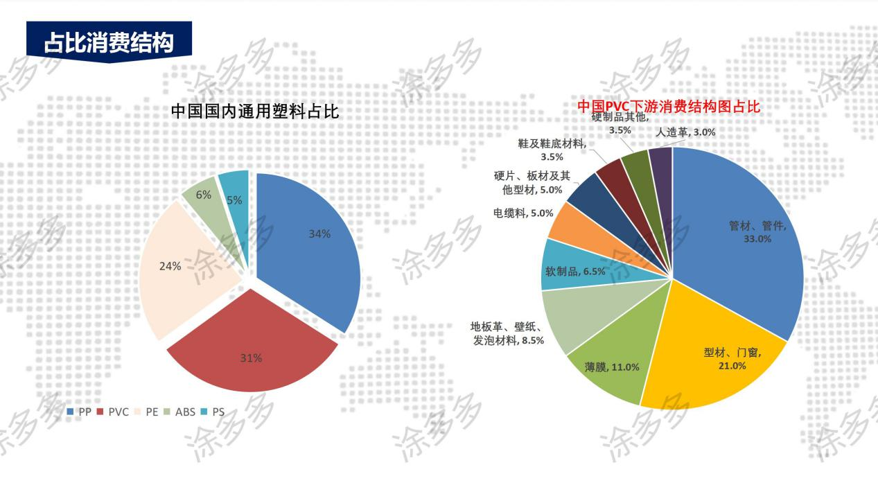 电石法工艺:1吨PVC=1.45-1.55吨电石+227度电+700公斤氯气(占PVC成本的80%)。乙烯法PVC工艺:PVC与EDC/VCM的简单比例基本为1:1.001的比例,VCM美金报盘*10+1000是基本的销售成本,再减去500是生产成本。
